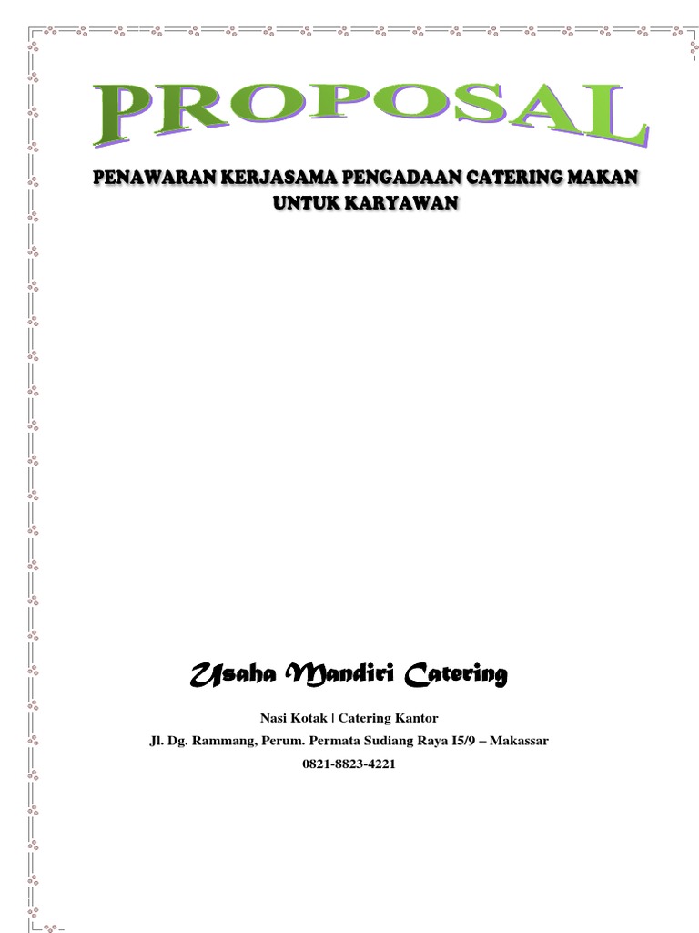Contoh proposal bisnis contoh proposal usaha makanan a.pendahuluan latar belakang pada saat ini banyak orang yang ingin membuat acara atau kegiatan secara simpel dan efisien.