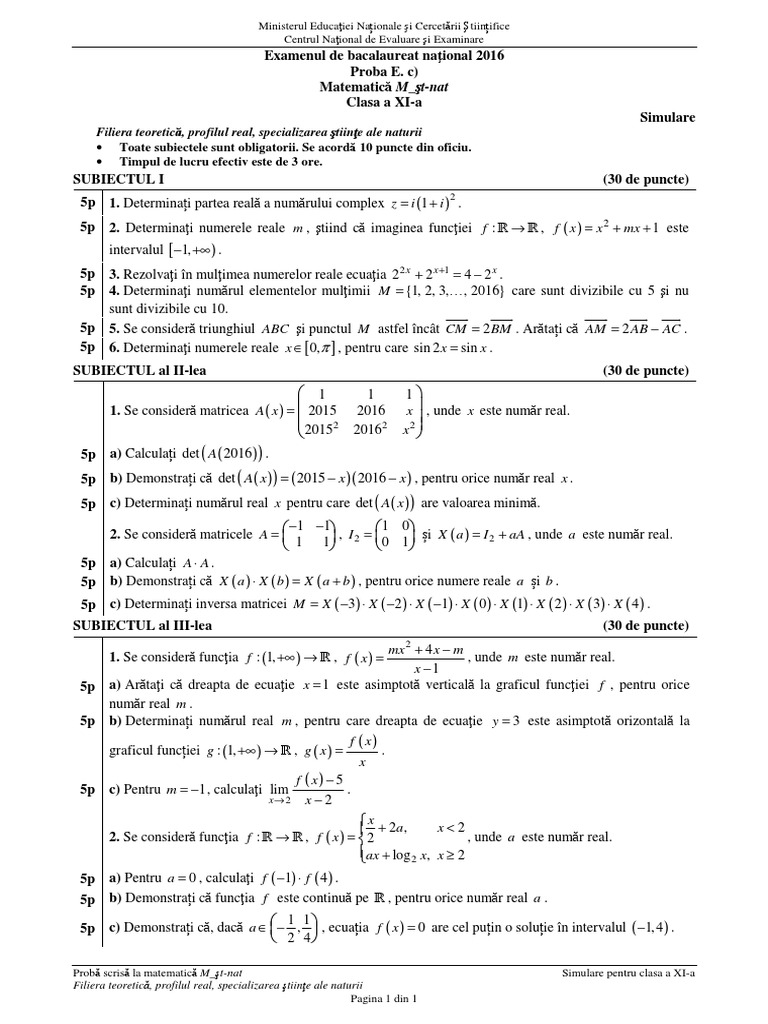 Subiecte Simulare Bac 2021 Matematica : Subiecte simulare Matematică BAC 2019 // Subiecte.edu.ro - barem corectare. Subiecte bac matematica pentru examenul de bacalaureat. Limba şi literatura română, alolingvi (sesiunea de bază, bac, 2019). » prima pagină » simulare. *100 variante bac 2009 matematică rezolvate. Formule matematica gimnaziu evaluare nationala matematica variante capacitate matematica simulare capacitate matematica evaluare rezolvare model subiecte matematica bac 2021 m pedagogic.